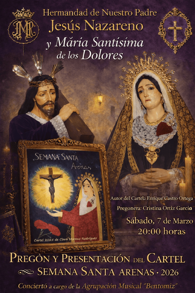 • Cartel anunciador de la Semana Santa de Arenas Málaga 2026.